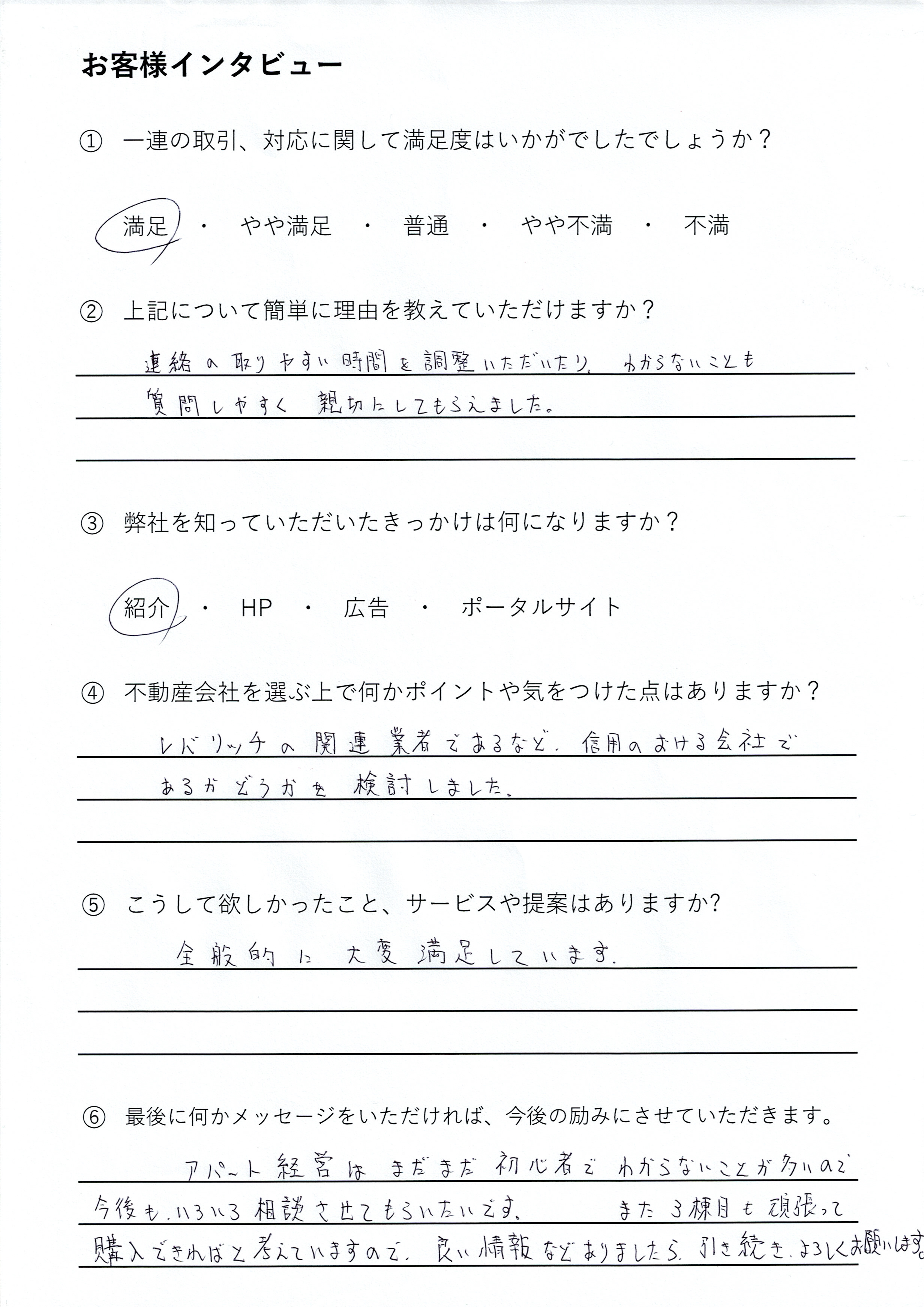 Q1.一連の取引、対応に関して満足度はいかがでしたでしょうか?