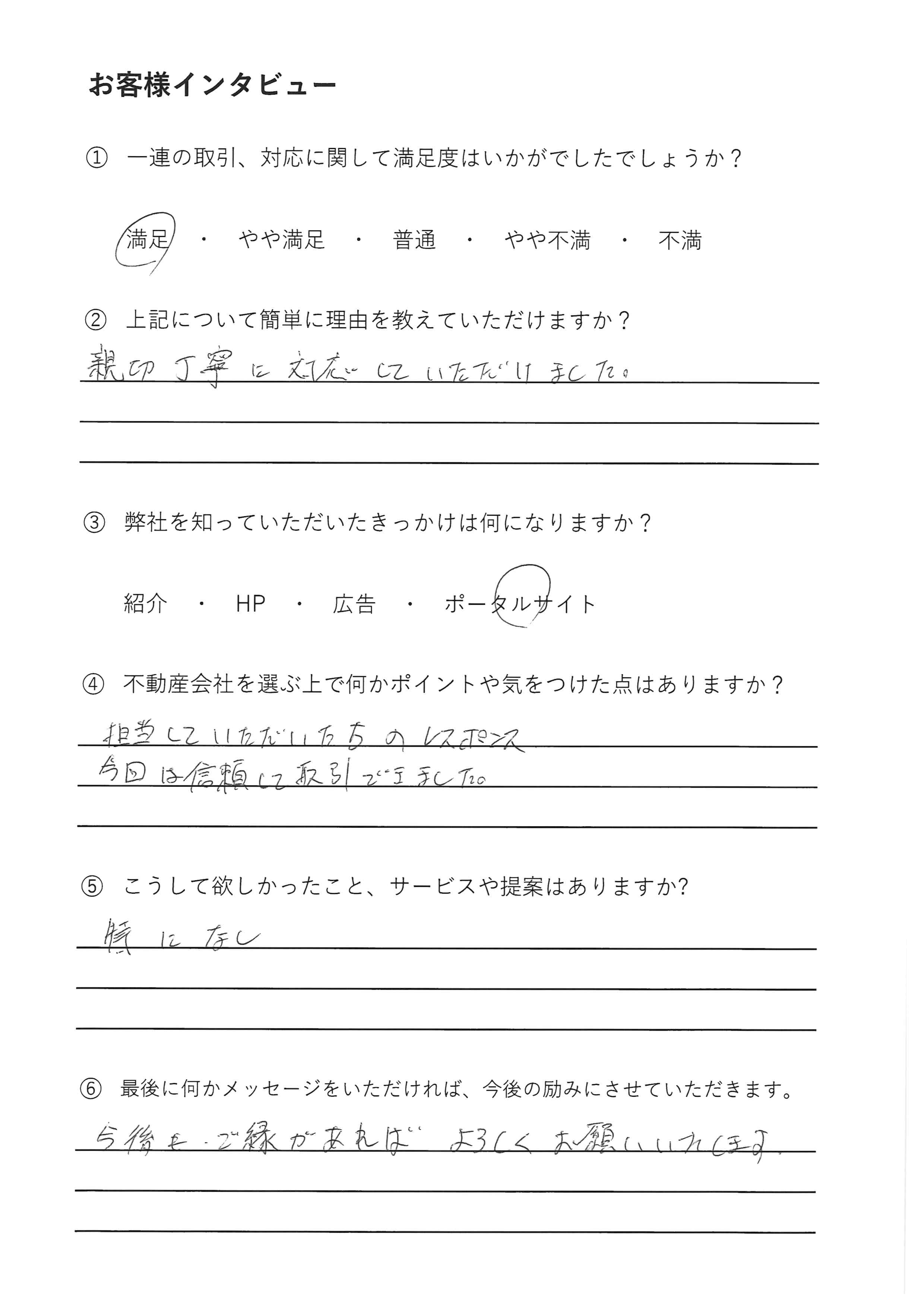 Q1.一連の取引、対応に関して満足度はいかがでしたでしょうか?