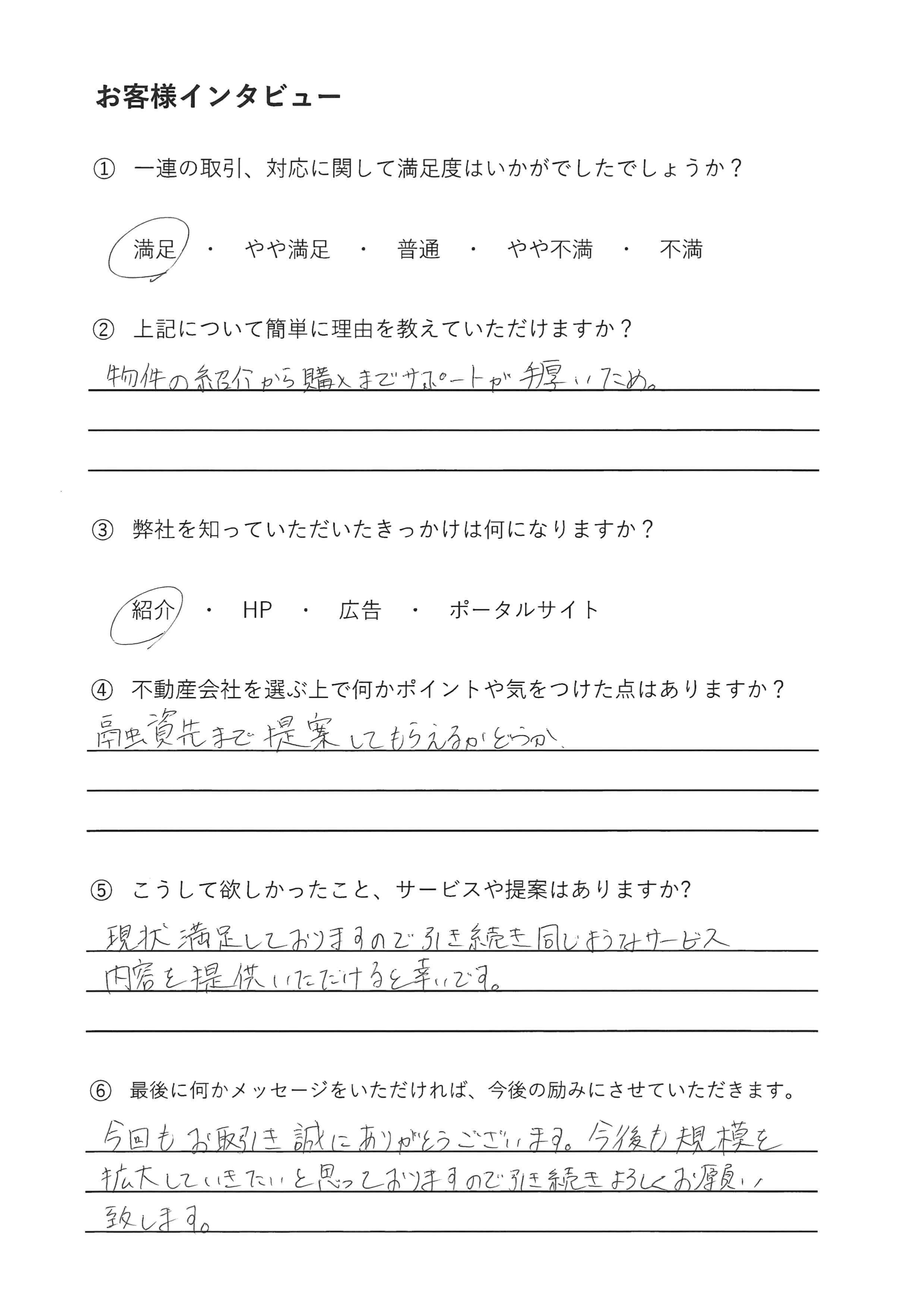 物件の紹介から購入までサポートが手厚いため。