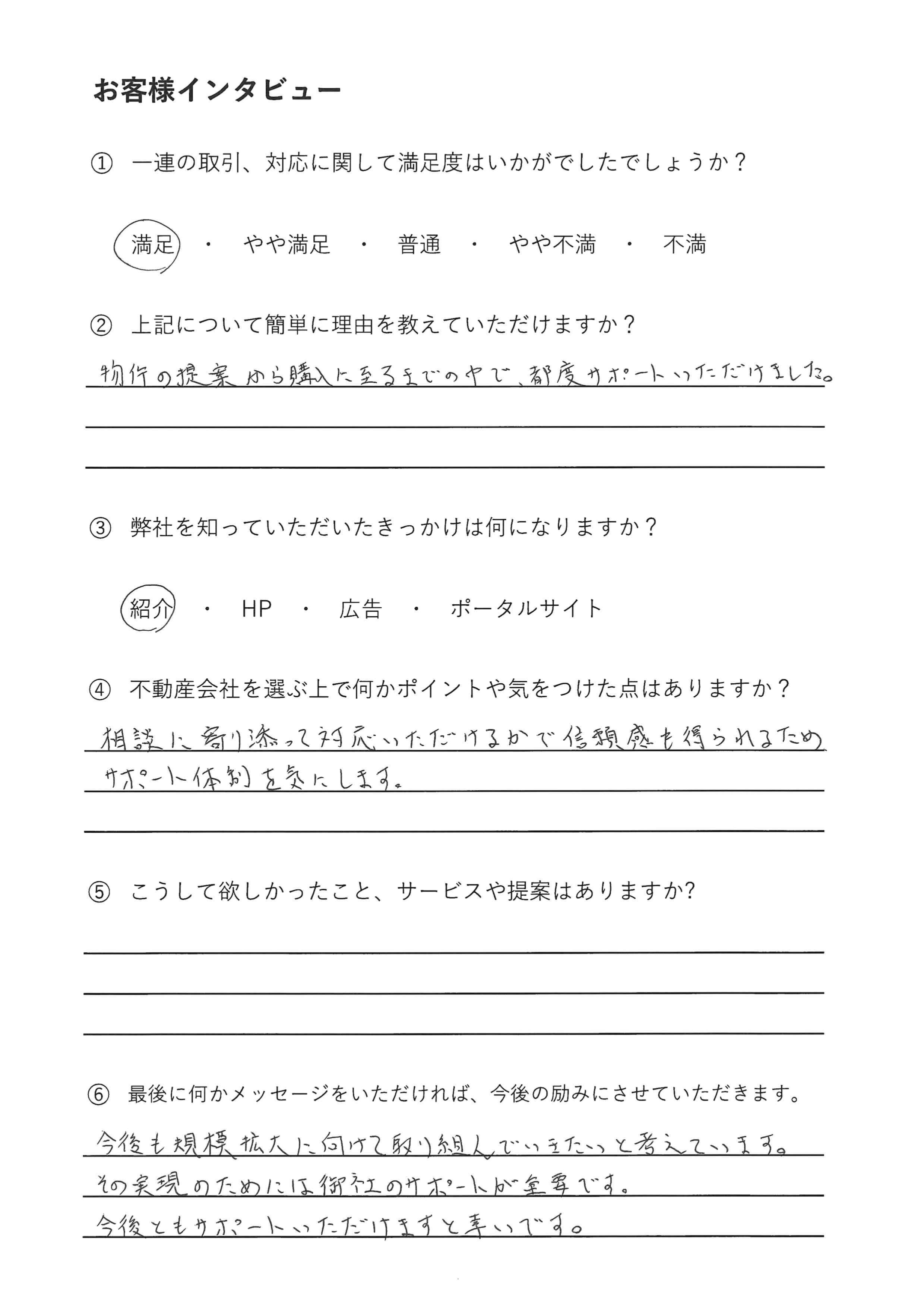 物件の提案から購入に至るまでの中で、都度サポートいただけました。