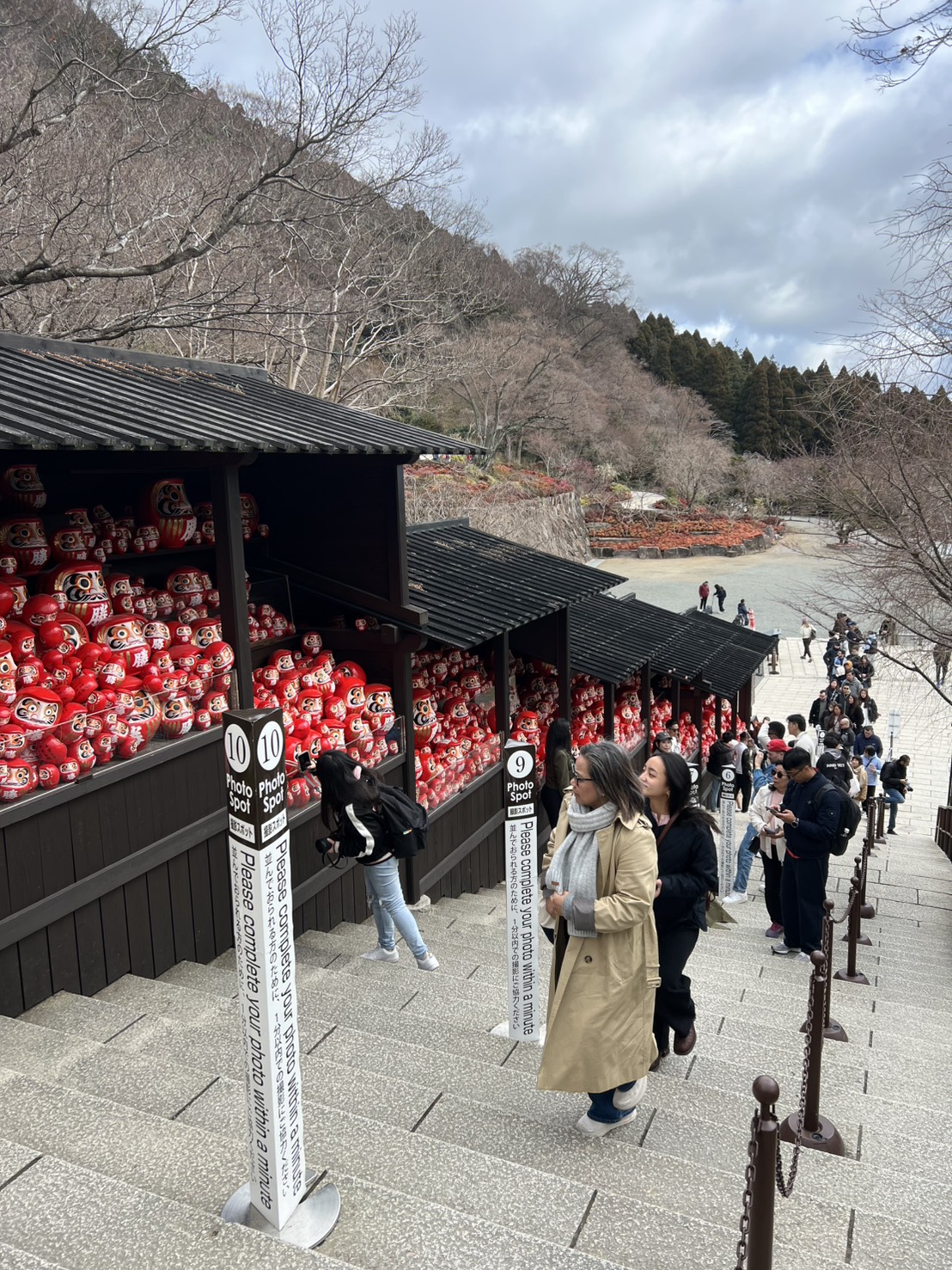 階段の横には、これまで多くの人が願いを込めて奉納したダルマが並んでいます。